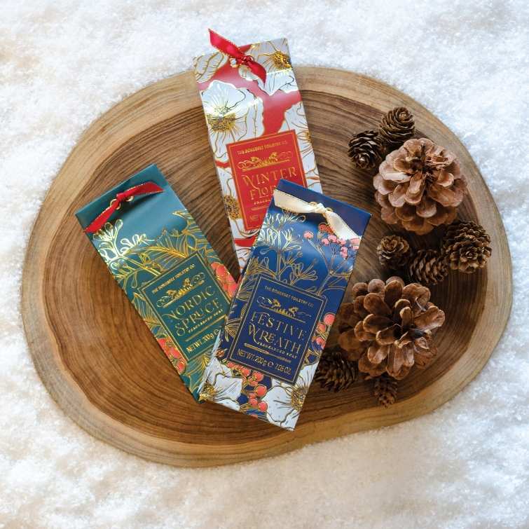 Transform your bathroom with our Christmas Opulence Soap! These triple-milled soap bars are lovingly crafted in the UK using (RSPO-certified) sustainably sourced palm oil.